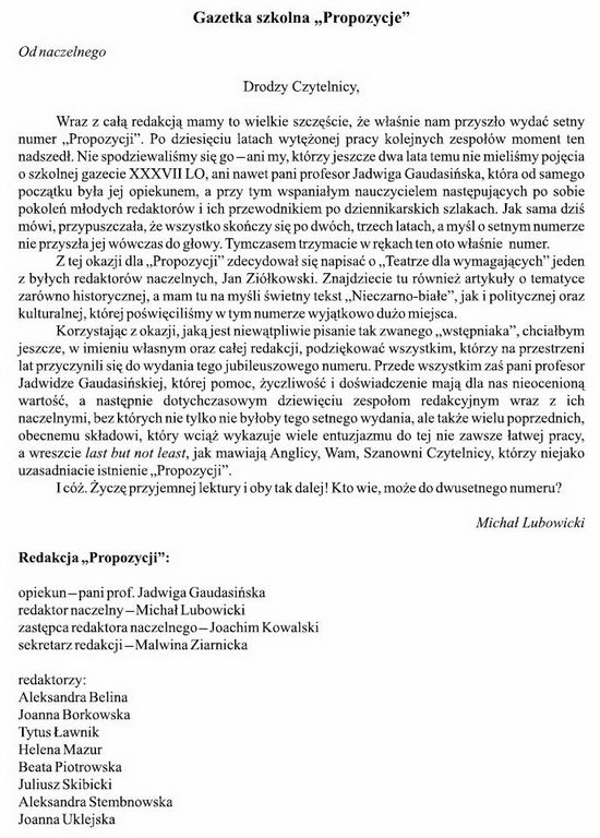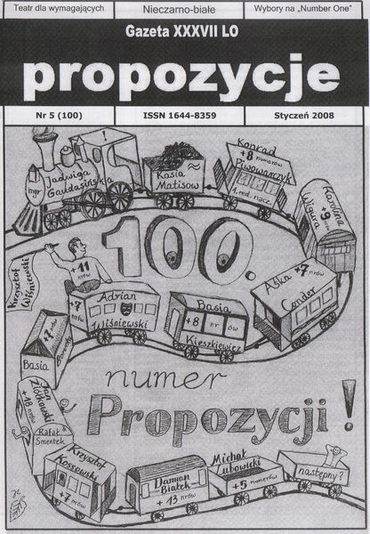 Opracował: Tymoteusz Oleniecki, kl. III F Relacja fotograficzna z przedstawienia: Galeria - Wydarzenia i uroczystości. Gazetka szkolna "Propozycje" świętuje 10-lecie istnienia (styczeń, 2008)