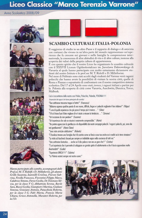 Kliknij, aby zobaczyć większe zdjęcia Tłumaczenie strony z rocznika Liceum M.T Varrone w Rieti dotycząca wymiany: Wymiana polsko-włoska