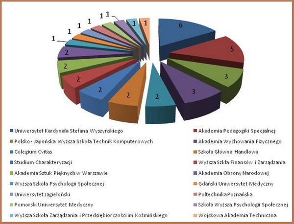 Liczba absolwentów przyjętych na inne uczelnie w 2010 roku (wykres 3)